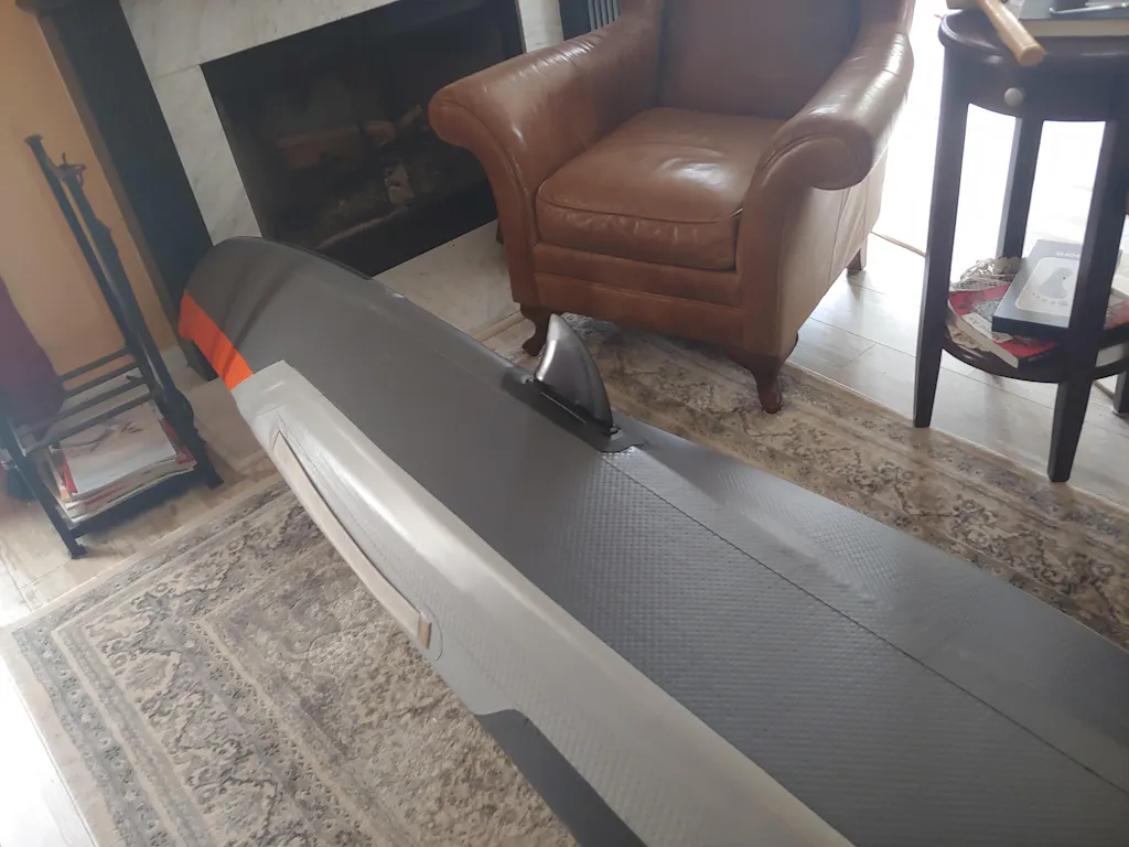 The kayak must be deflated to insert or remove the fin, so I don't leave it on the boat, and I don't always want it anyway. It improves tracking substantially, but it can snag submerged trees and limbs or even the bottom in very shallow water. The kayak sits high in the water and only needs a few inches of clearance. The fin adds another five inches.